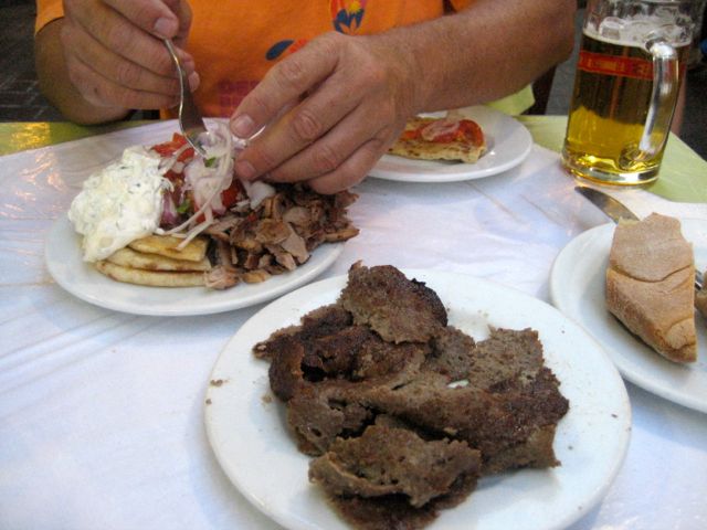 Of course, it was a dish of some type of Greek Gyros... we ended up getting a mixture of beef, pork and lamb. It served enough to feed four people, but the two of us managed to almost eat the whole thing and we still managed to par take in a couple of the Greek beers!